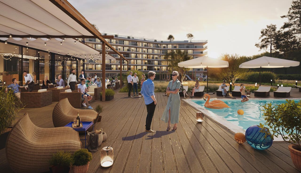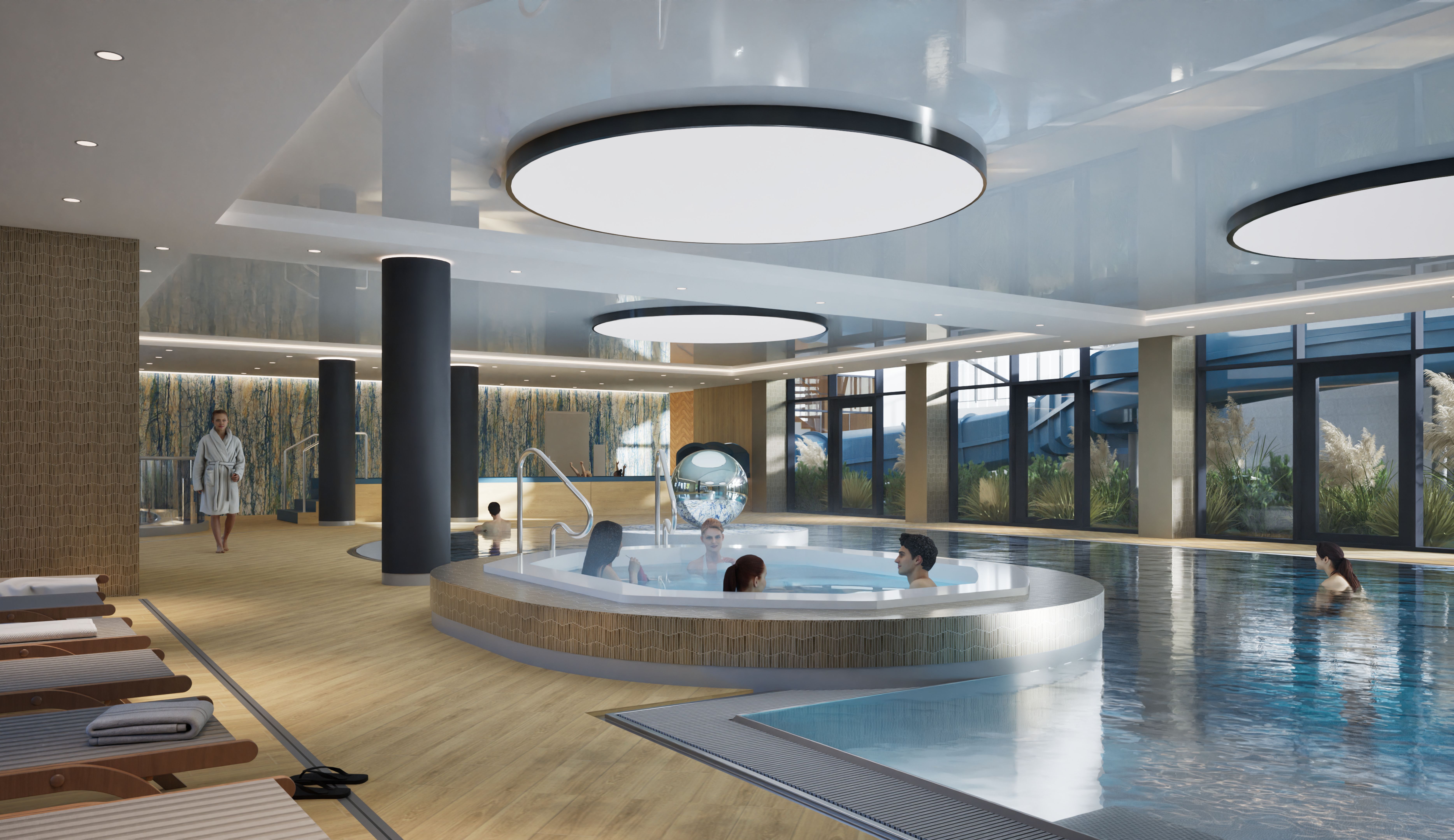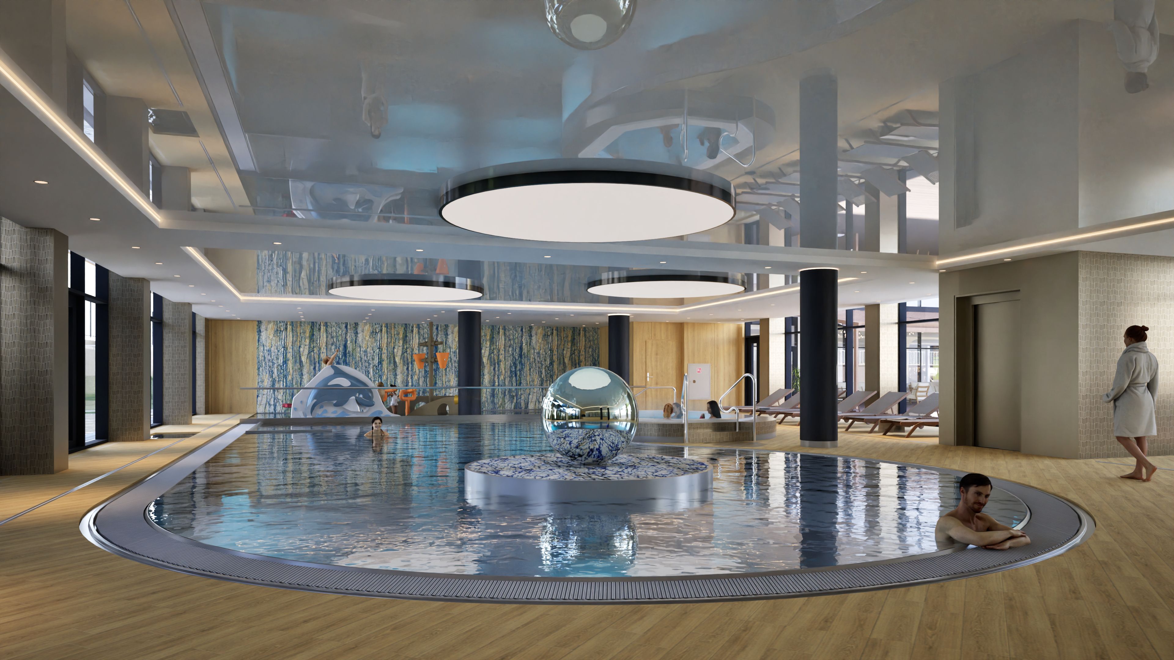 Komfortowa strefa wellness z basenem zewnętrzym, jacuzzi i drink barem pozwoli niespiesznie rozkoszować się urokami ciepłych dni. Dla najmłodszych powstanie spray park w którym będą mogli wesoło spędzać czas na zabawie. Komfortowa strefa znajdzie się również na dziedzińcu gdzie będzie można skorzystać ze strefy wellness lub zwyczajnie poleniuchować na tarasie.