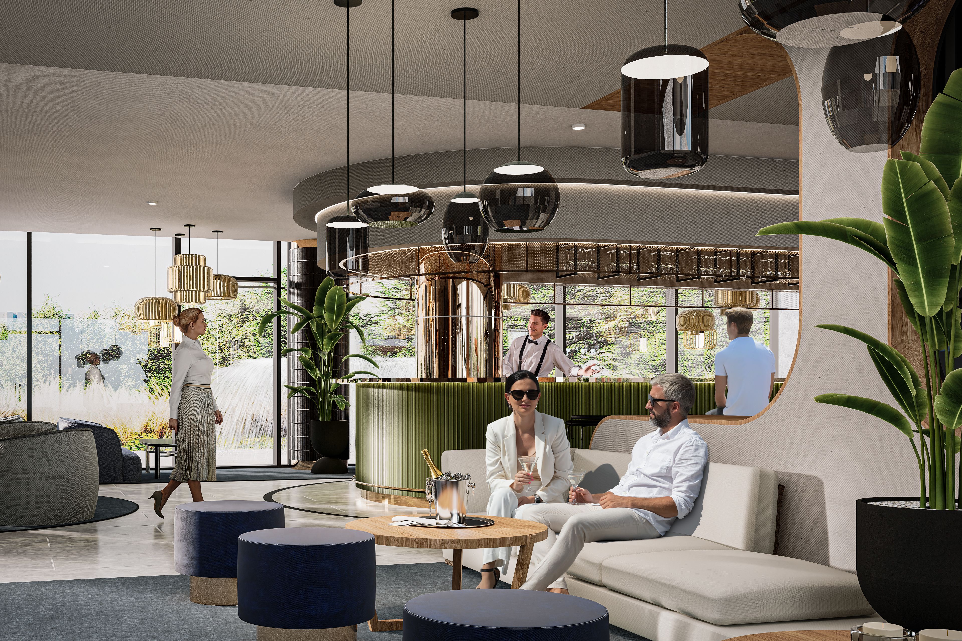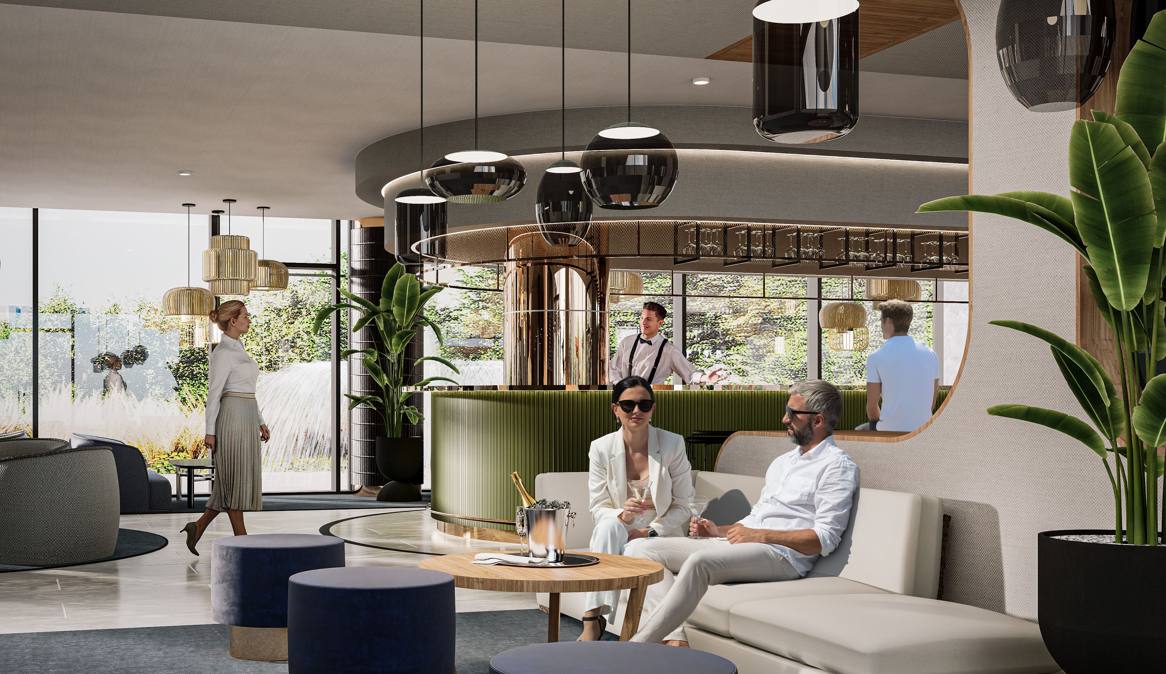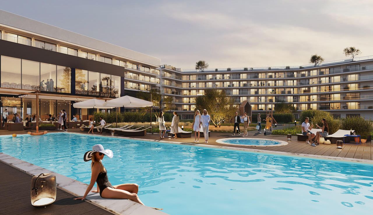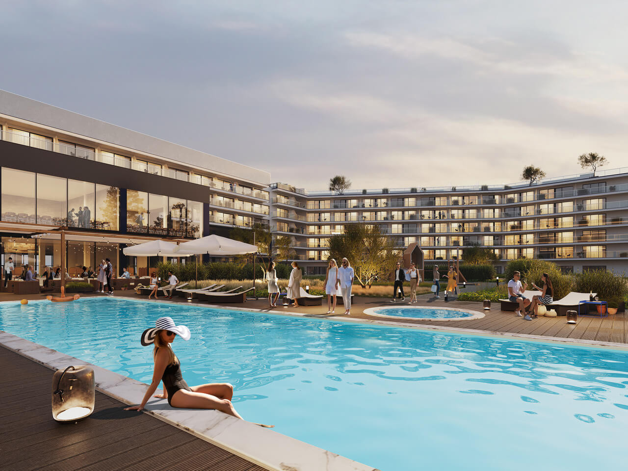 Komfortowa strefa wellness z basenem zewnętrzym, jacuzzi i drink barem pozwoli niespiesznie rozkoszować się urokami ciepłych dni. Dla najmłodszych powstanie spray park w którym będą mogli wesoło spędzać czas na zabawie. Komfortowa strefa znajdzie się również na dziedzińcu gdzie będzie można skorzystać ze strefy wellness lub zwyczajnie poleniuchować na tarasie.
