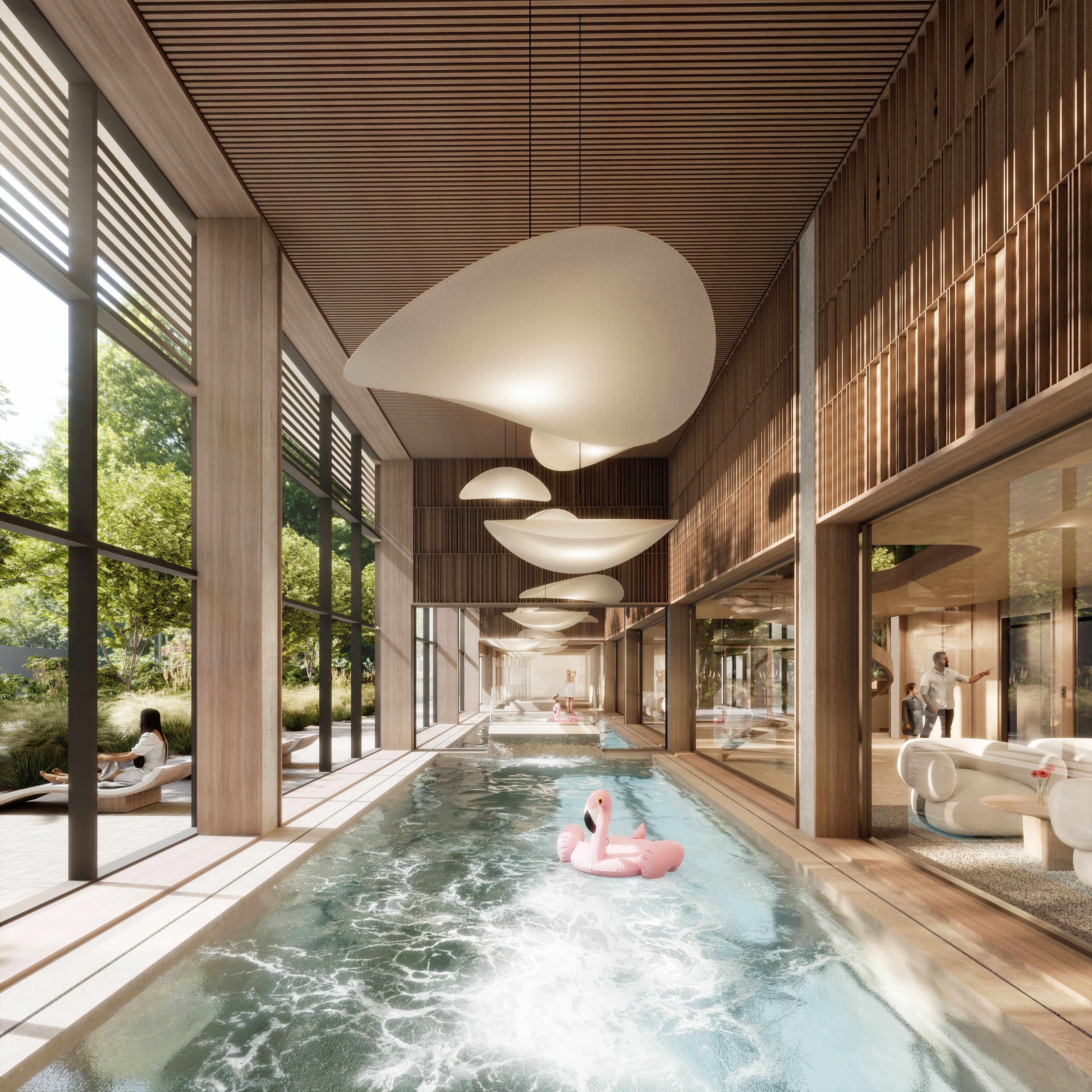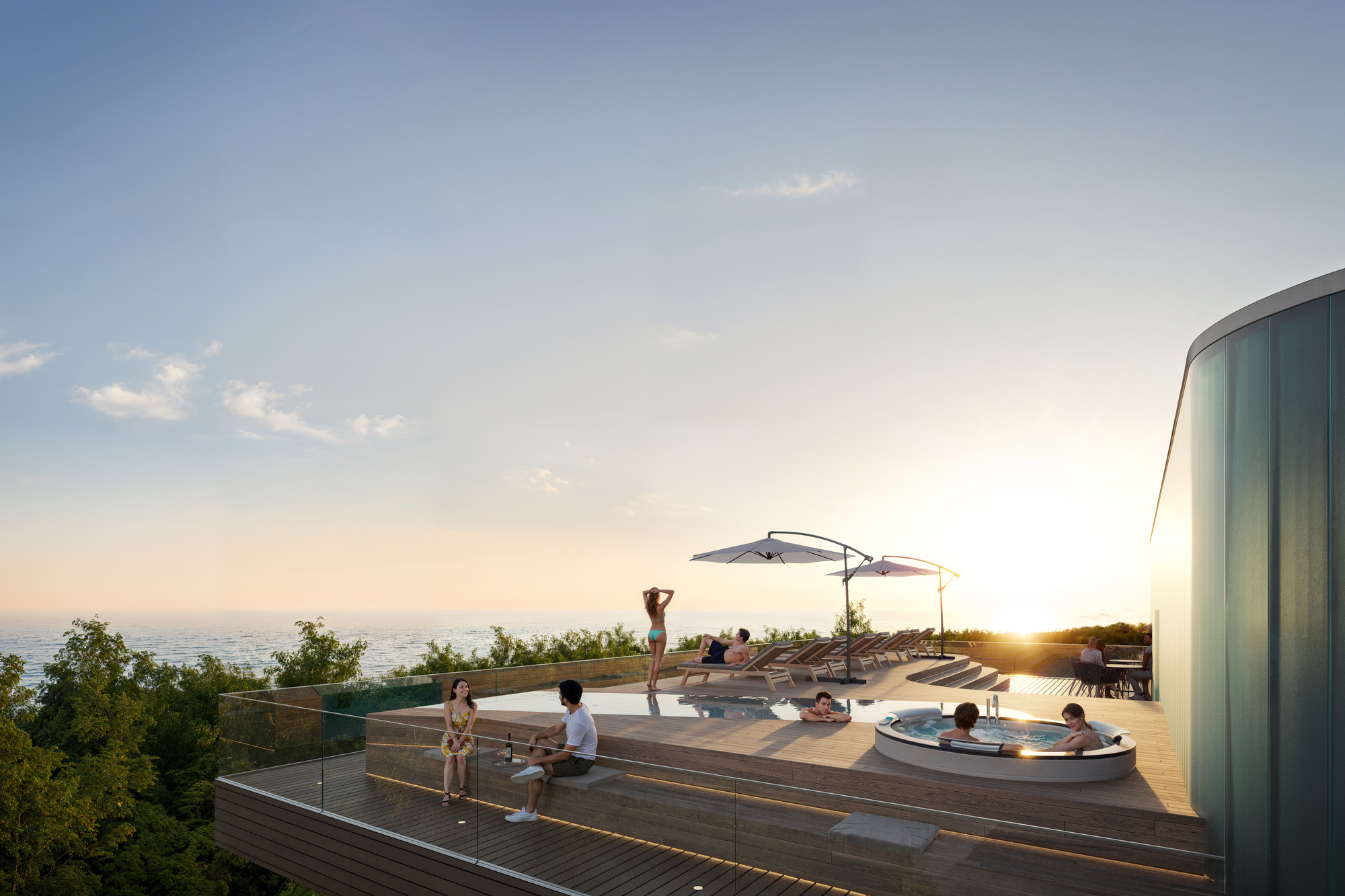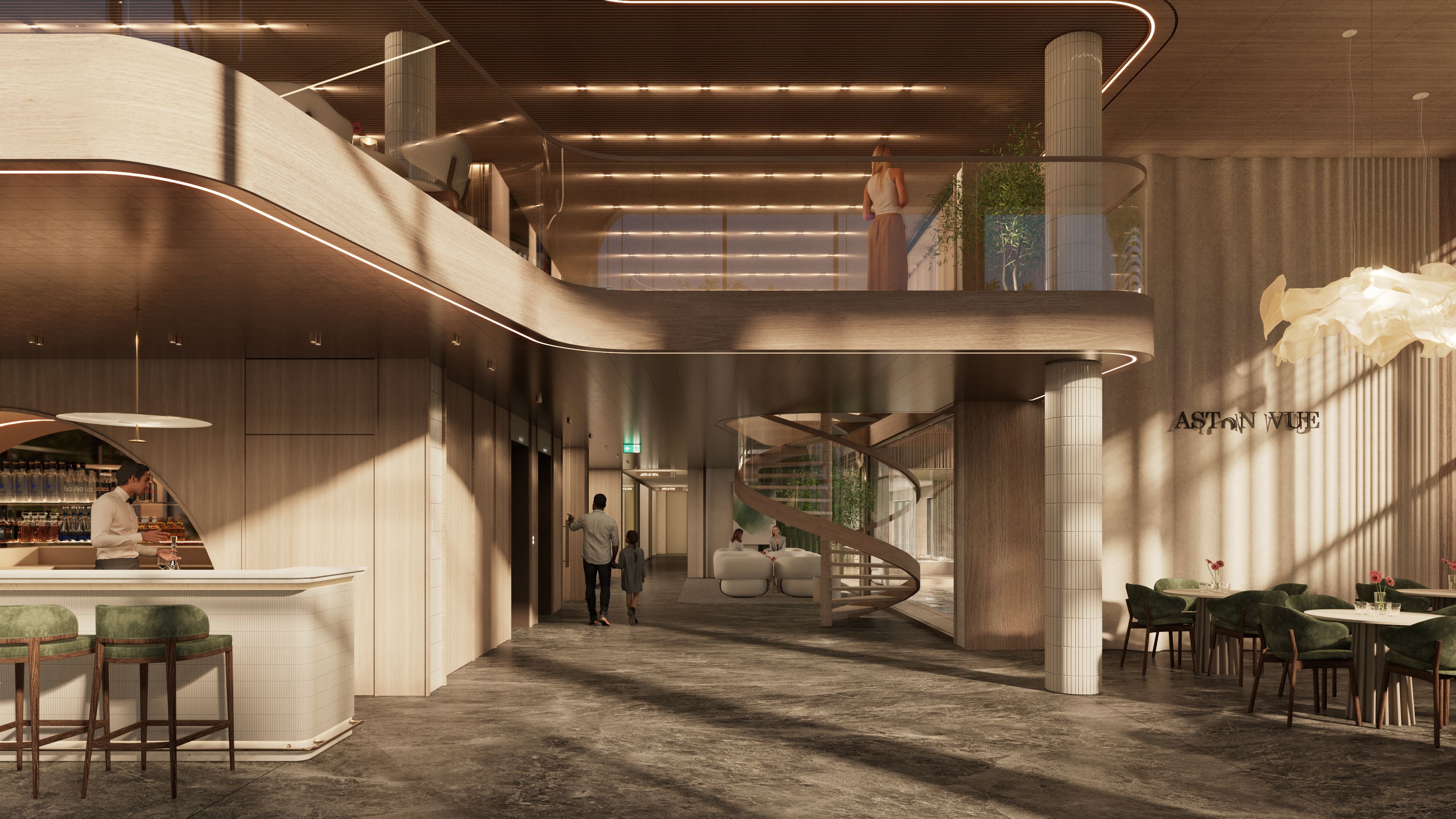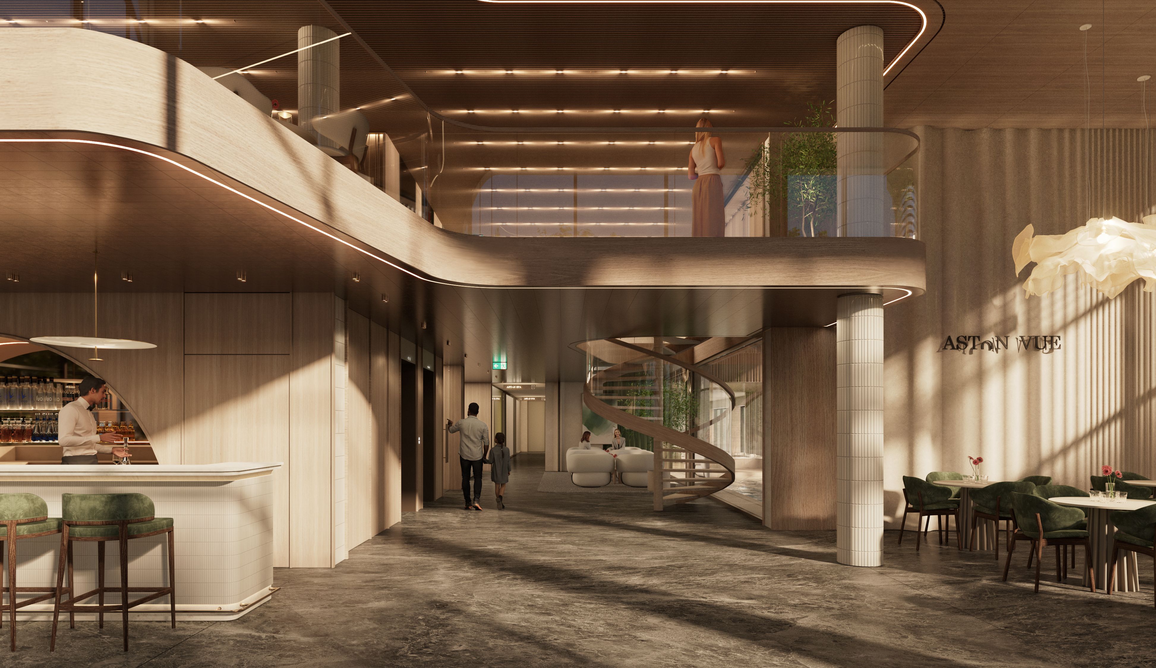 Aston Vue to nie tylko apartamenty, lecz kompleksowa koncepcja stylu życia. Do dyspozycji właścicieli i gości pozostaje całoroczna strefa wellness obejmująca wewnętrzny basen, spa, sauny oraz nowoczesną siłownię. Na dachu zaprojektowano panoramiczny basen i jacuzzi z widokiem na morze – przestrzeń, która wyróżnia projekt na tle innych inwestycji nad Bałtykiem. Eleganckie lobby z barem, strefa dla dzieci oraz dopracowane przestrzenie wspólne tworzą atmosferę butikowego resortu, zapewniając komfort zarówno podczas prywatnego pobytu, jak i w trakcie wynajmu.