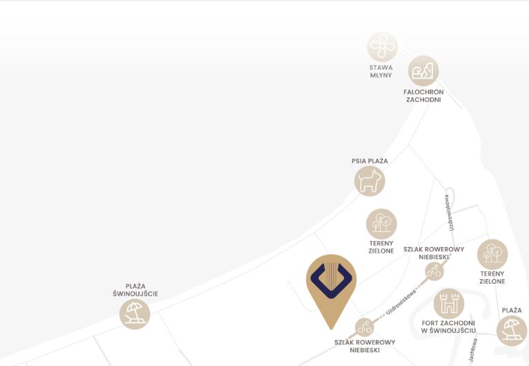 Apollo Resort zlokalizowany jest w pierwszej linii brzegowej Świnoujścia, tuż przy jednej z najszerszych plaż wybrzeża. Mieszkańcy na wyższych piętrach będą więc mogli podziwiać niepowtarzalne widoki na Bałtyk. Bliskość morza to jednak nie jedyna korzyść jaka wynika z jego położenia. W najbliższej okolicy będą Państwo mieli nieograniczony dostęp do kawiarni, restauracji i mnóstwa atrakcji turystycznych. Dla amatorów spędzania aktywnego czasu tuż przy inwestycji rozpościerają się promenady, ścieżki zdrowia oraz drogi rowerowe, a nieco bliżej brzegu Szkółka Kitesurfingu.