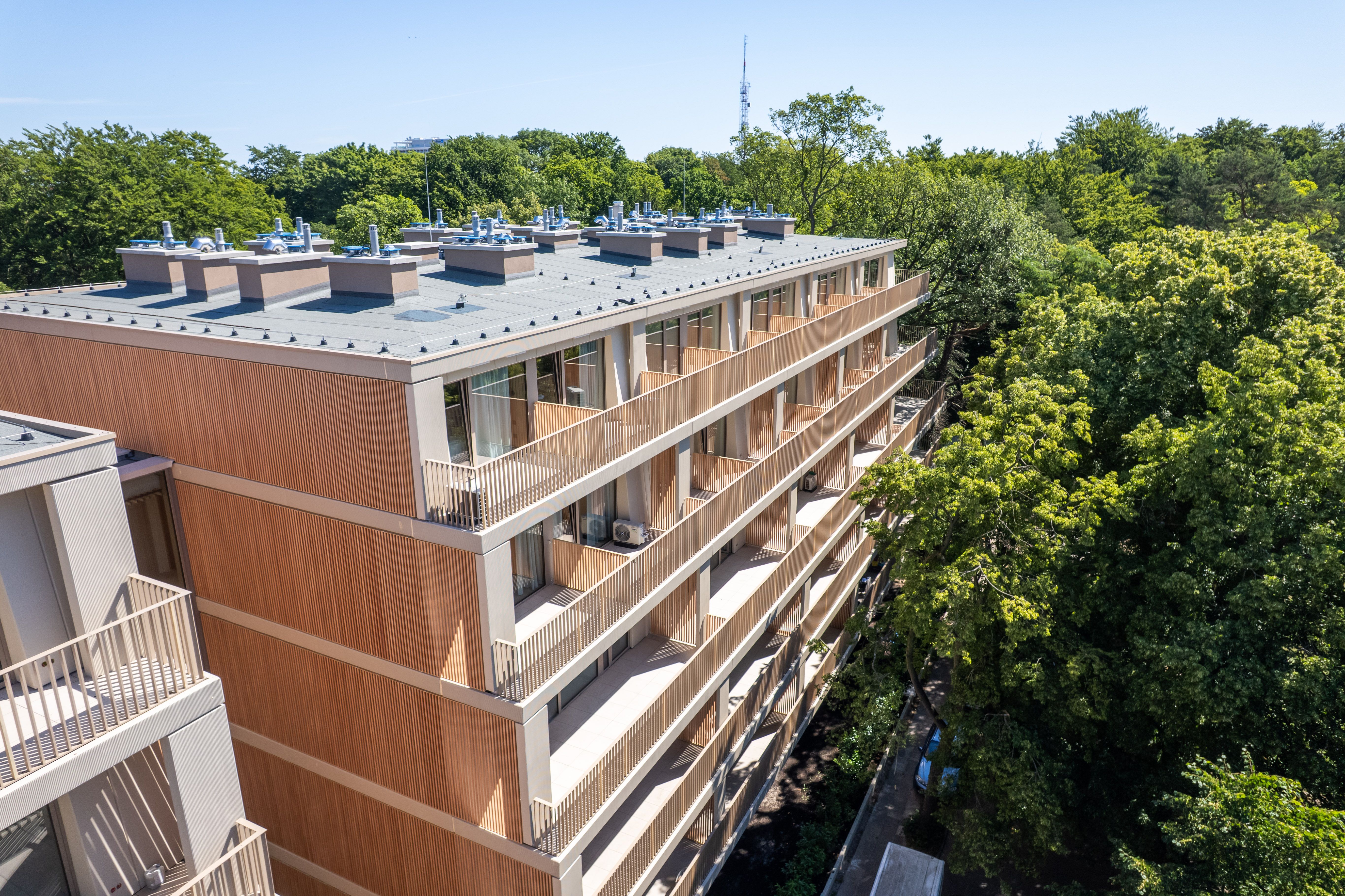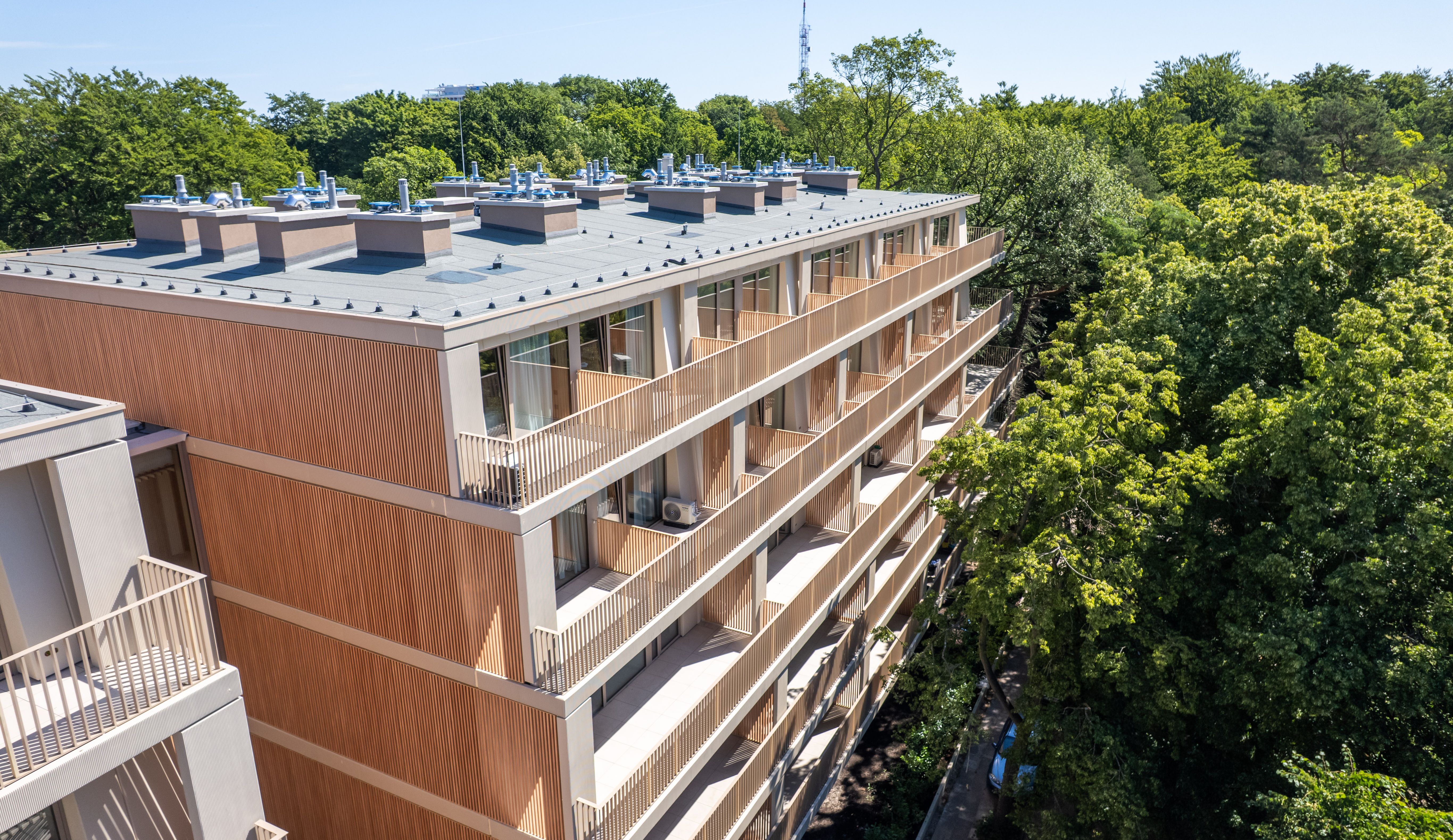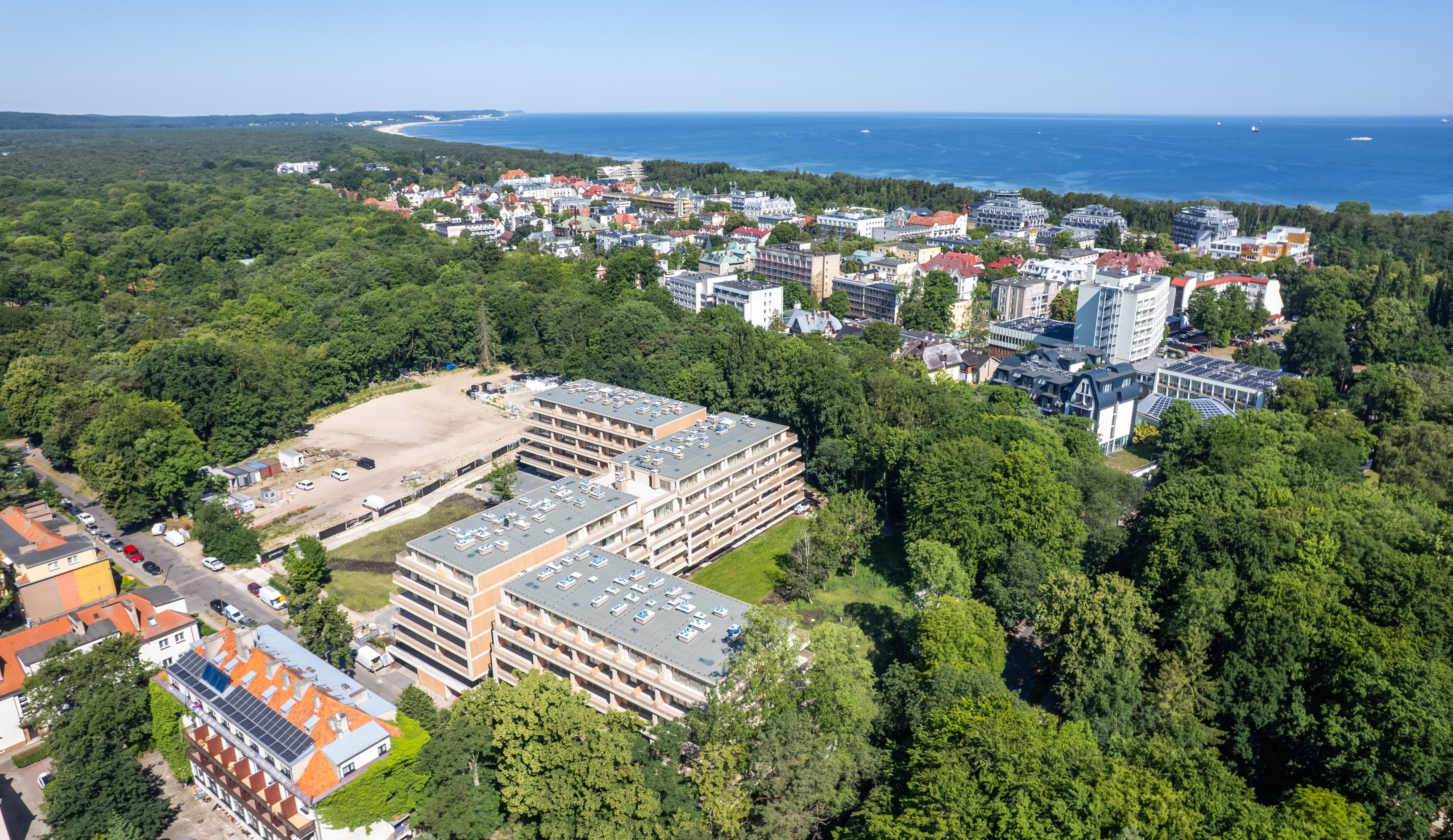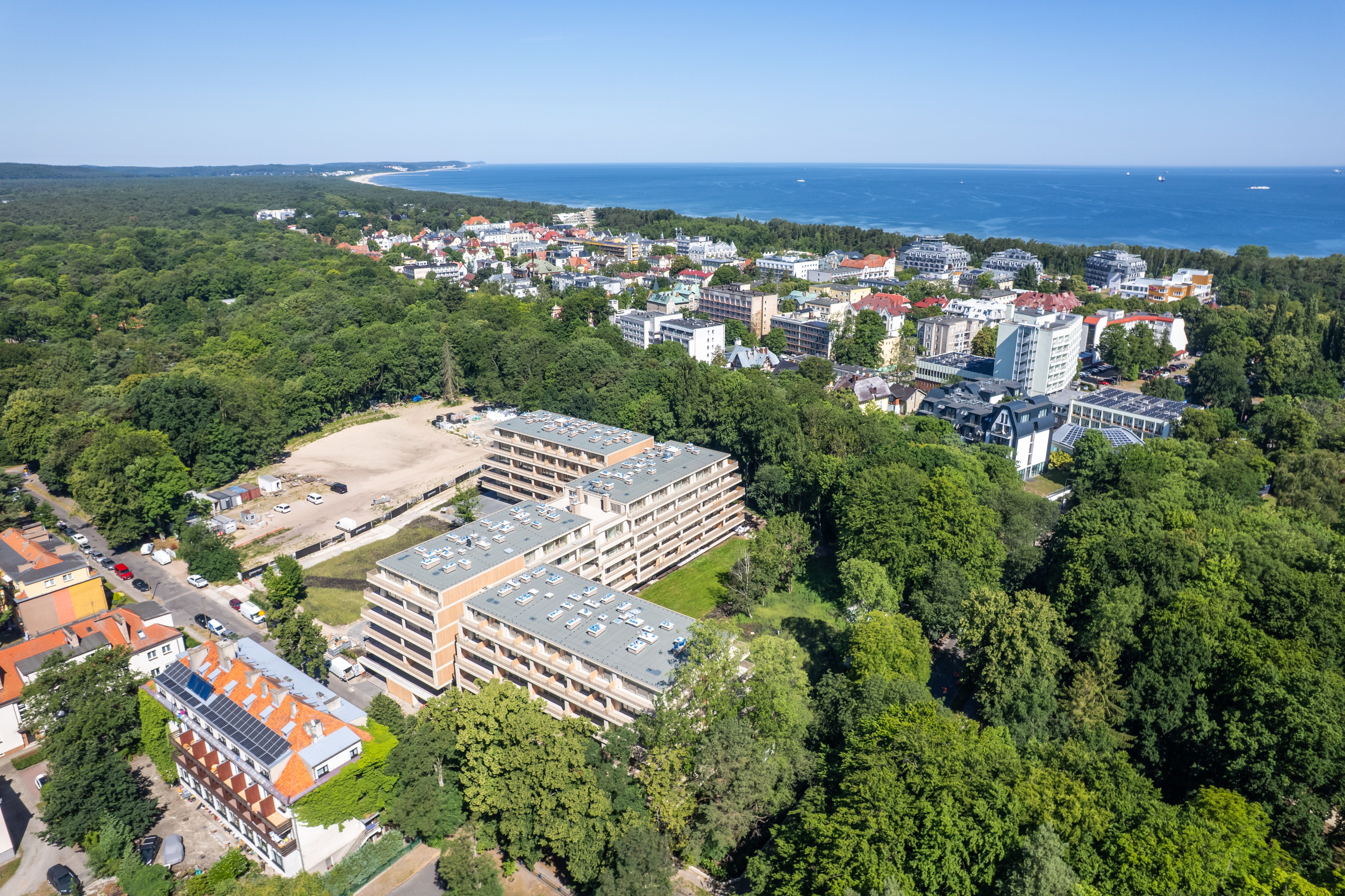 Architektura i kolorystyka inwestycji czerpie inspiracje z Parku Zdrojowego i jego starodrzewu. Stonowana kolorystyka z elementami drewna, delikatna iluminacja tarasów, parkowy charakter zagospodarowania terenu oraz imponujący wertykalny ogród w strefie wejściowej zapewniają atmosferę spokojnego i kameralnego wypoczynku w krajobrazie wybrzeża Morza Bałtyckiego.