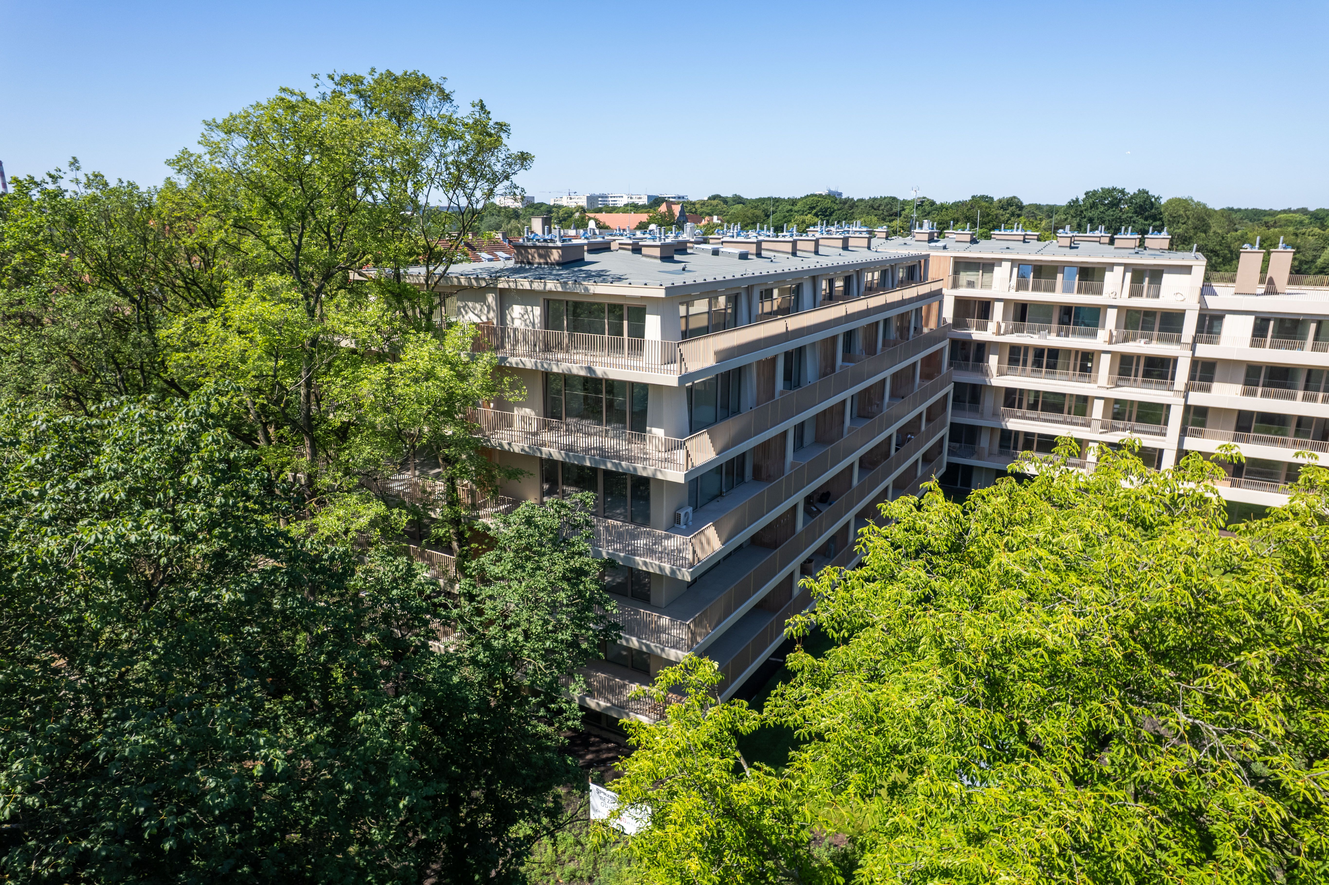 Pomimo śródmiejskiej lokalizacji jest otoczona drzewami. Oferuje strefy rekreacji wyposażone w urządzenia do ćwiczeń na świeżym powietrzu, tereny sportowe z boiskami do gier zespołowych, kameralny plac zabaw, strefę SPA z dwiema saunami i krytym basenem, strefę zabiegową, zewnętrzne jacuzzi oraz strefę dziecka.