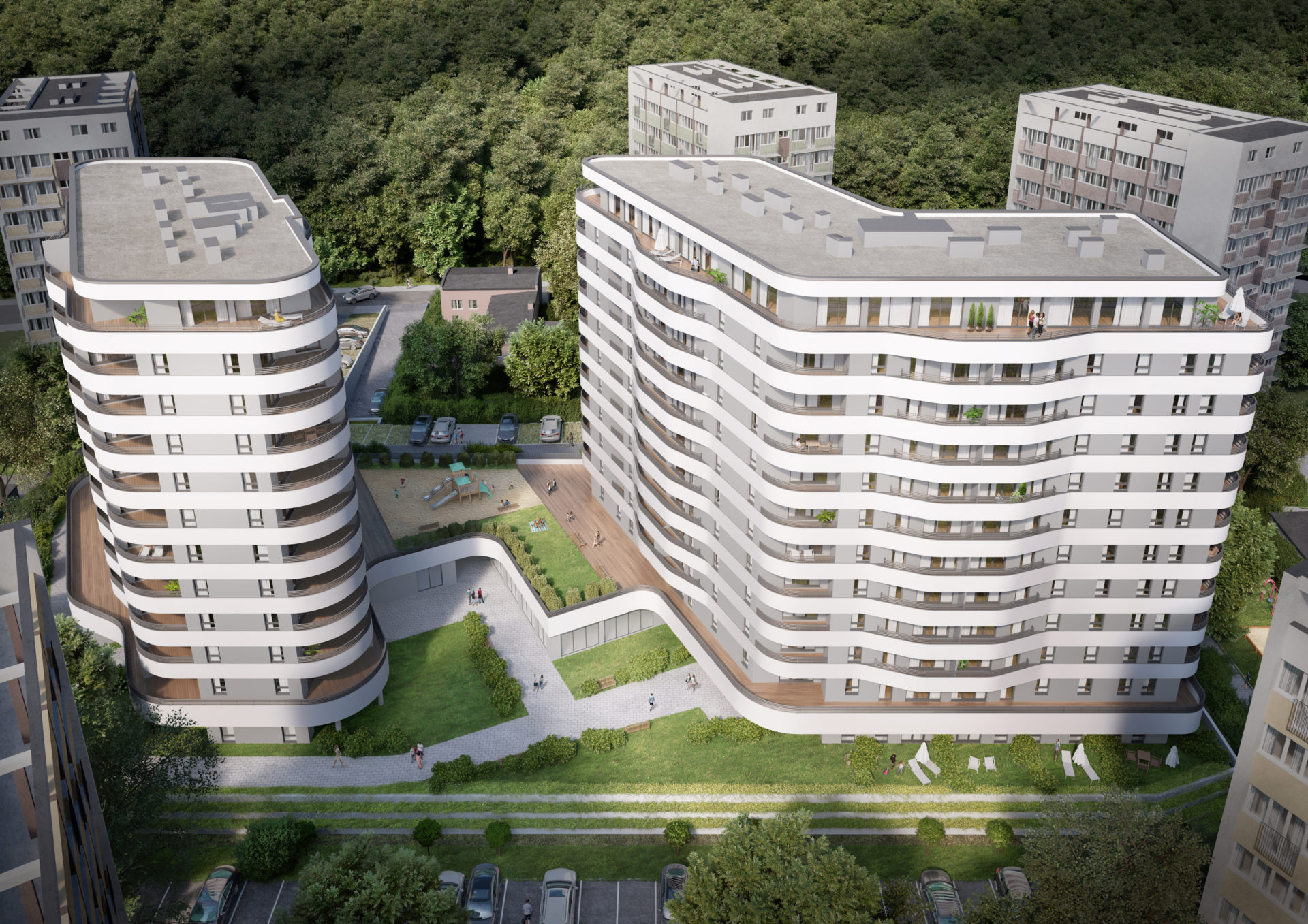 Dwa powstające budynki o niepowtarzalnej architekturze dwóch wież będą charakteryzować się elegancką oraz lekką bryłą, która nawiązuje do nadmorskich fal. Niewątpliwie walorów architektonicznych dodawać będzie biała elewacja i półokrągłe narożniki balkonów, które dodatkowo nadadzą budynkom lekkości.