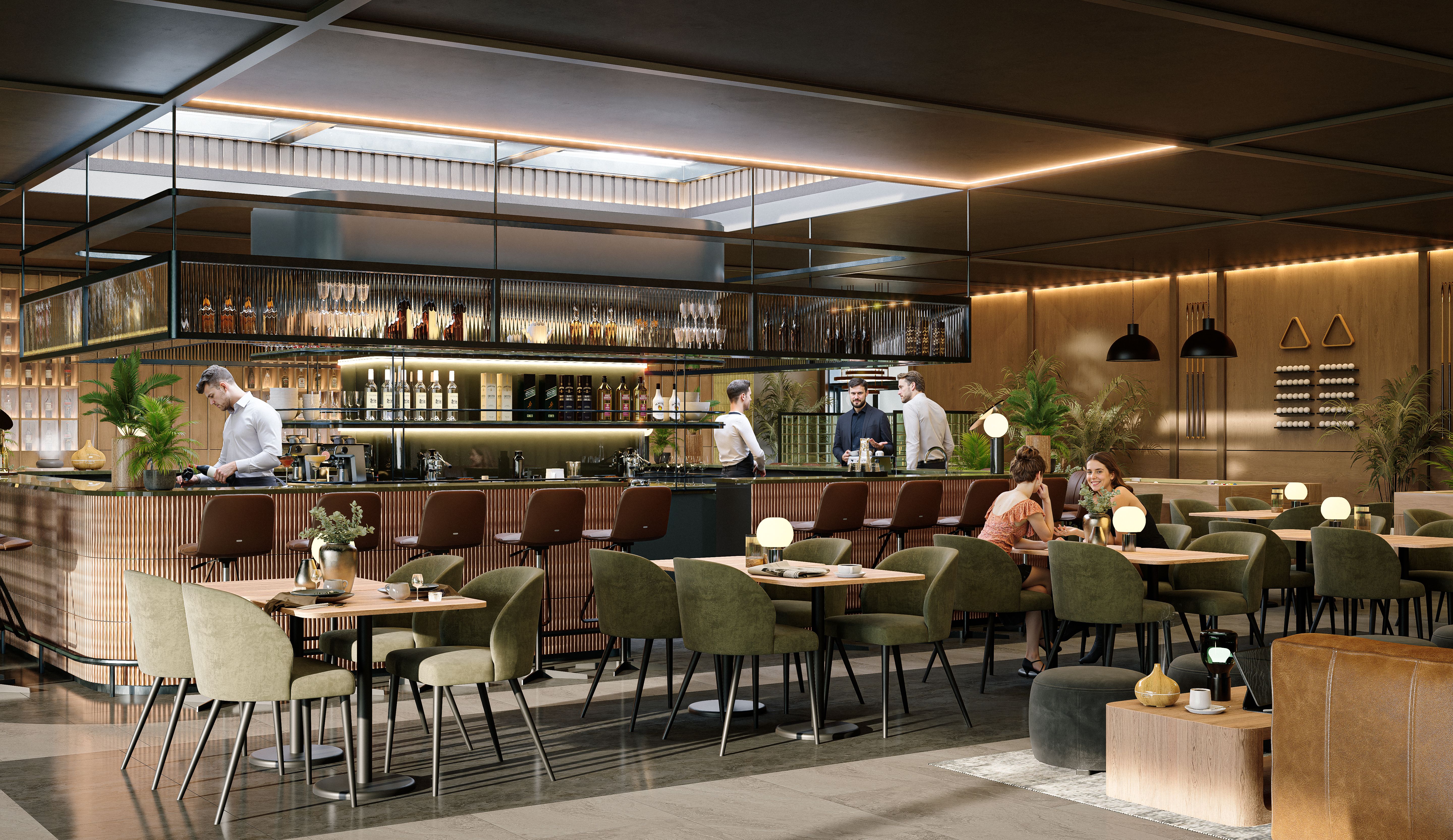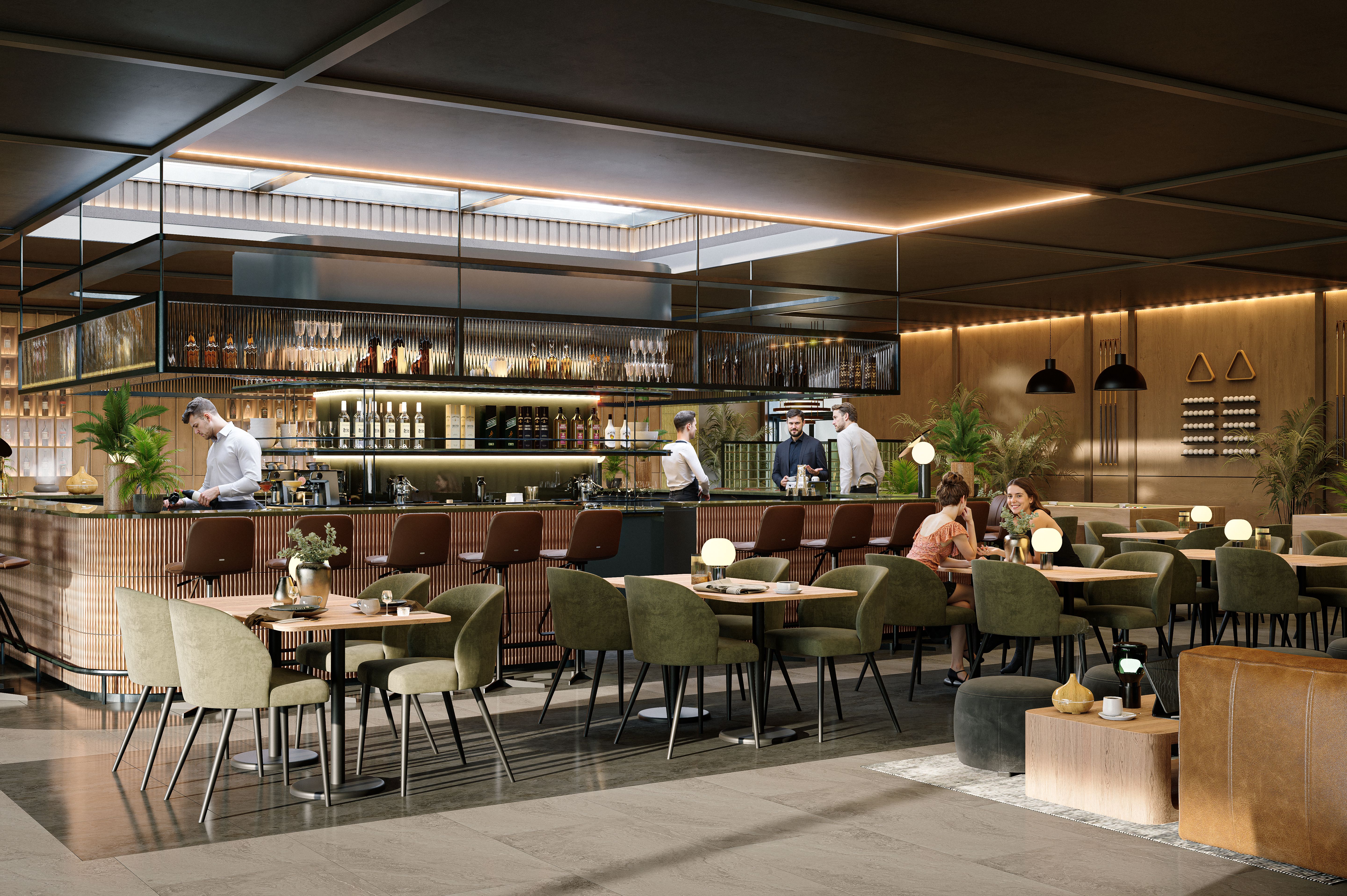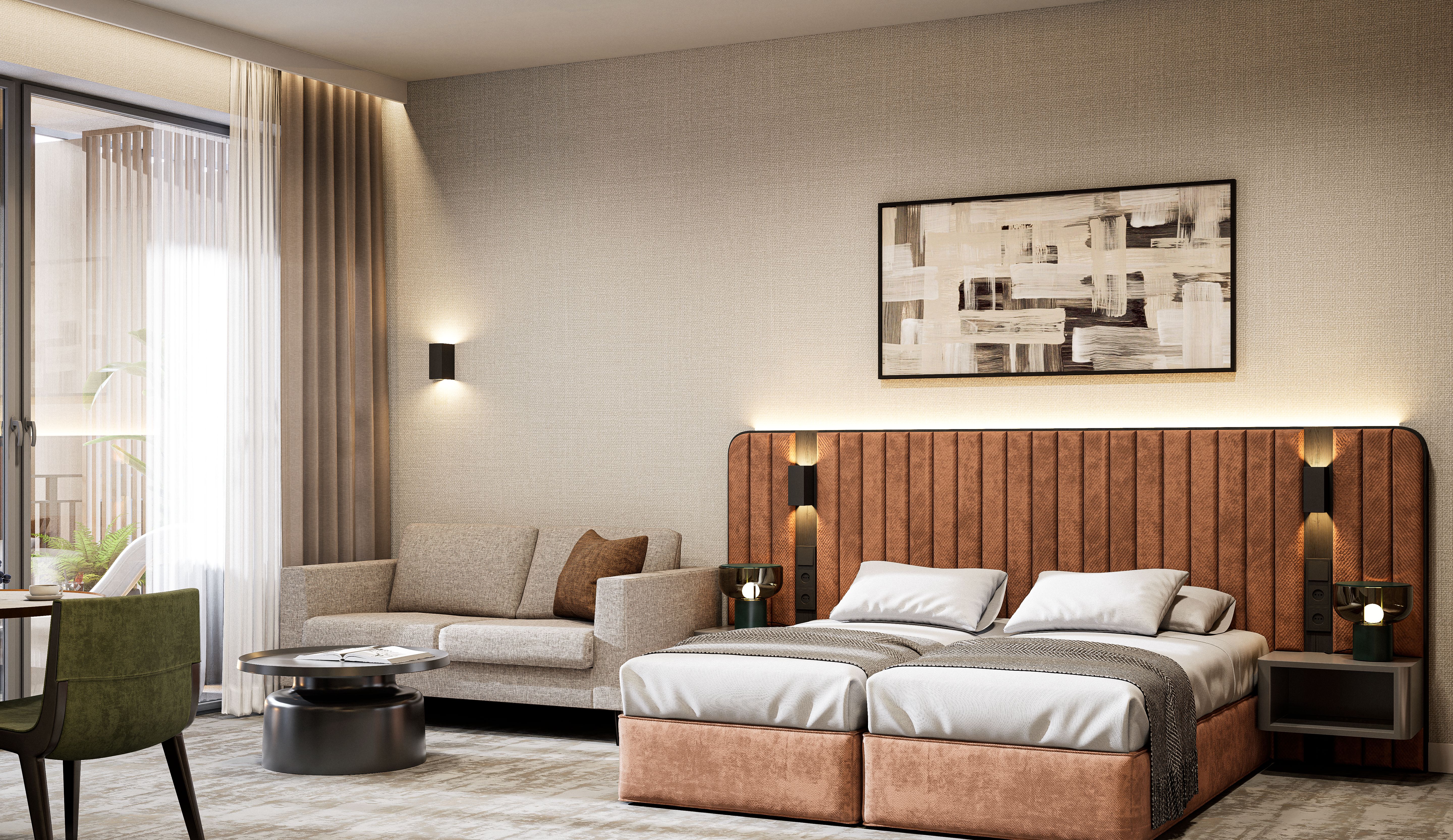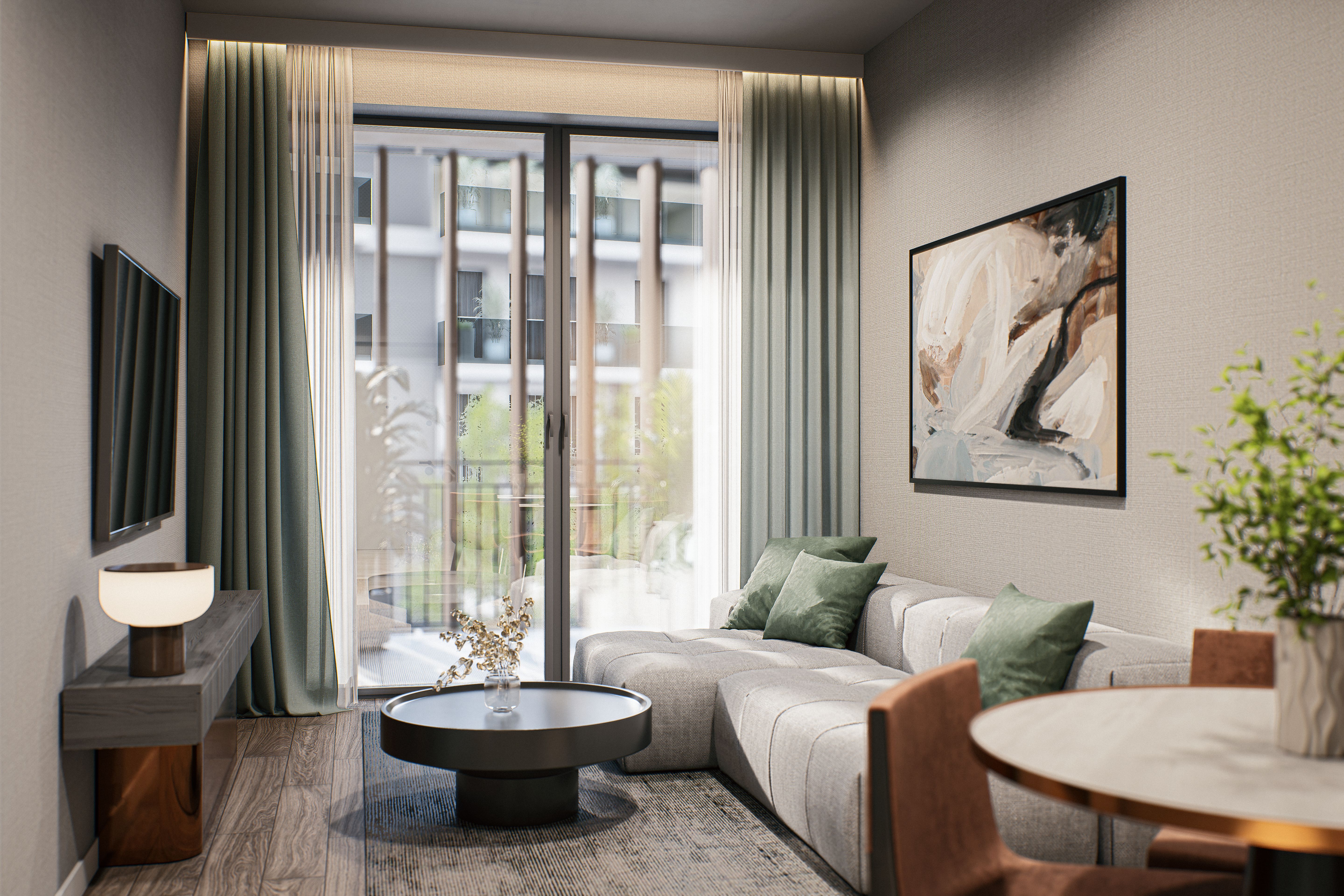 Ponad 50% terenu inwestycji stanowi roślinność – zielone dachy, wertykalne ogrody, ścieżki jogi i kameralne patia. Naturalne materiały i miękkie linie budynków przywołują surowe piękno bałtyckich klifów, a całość emanuje spokojem i elegancją