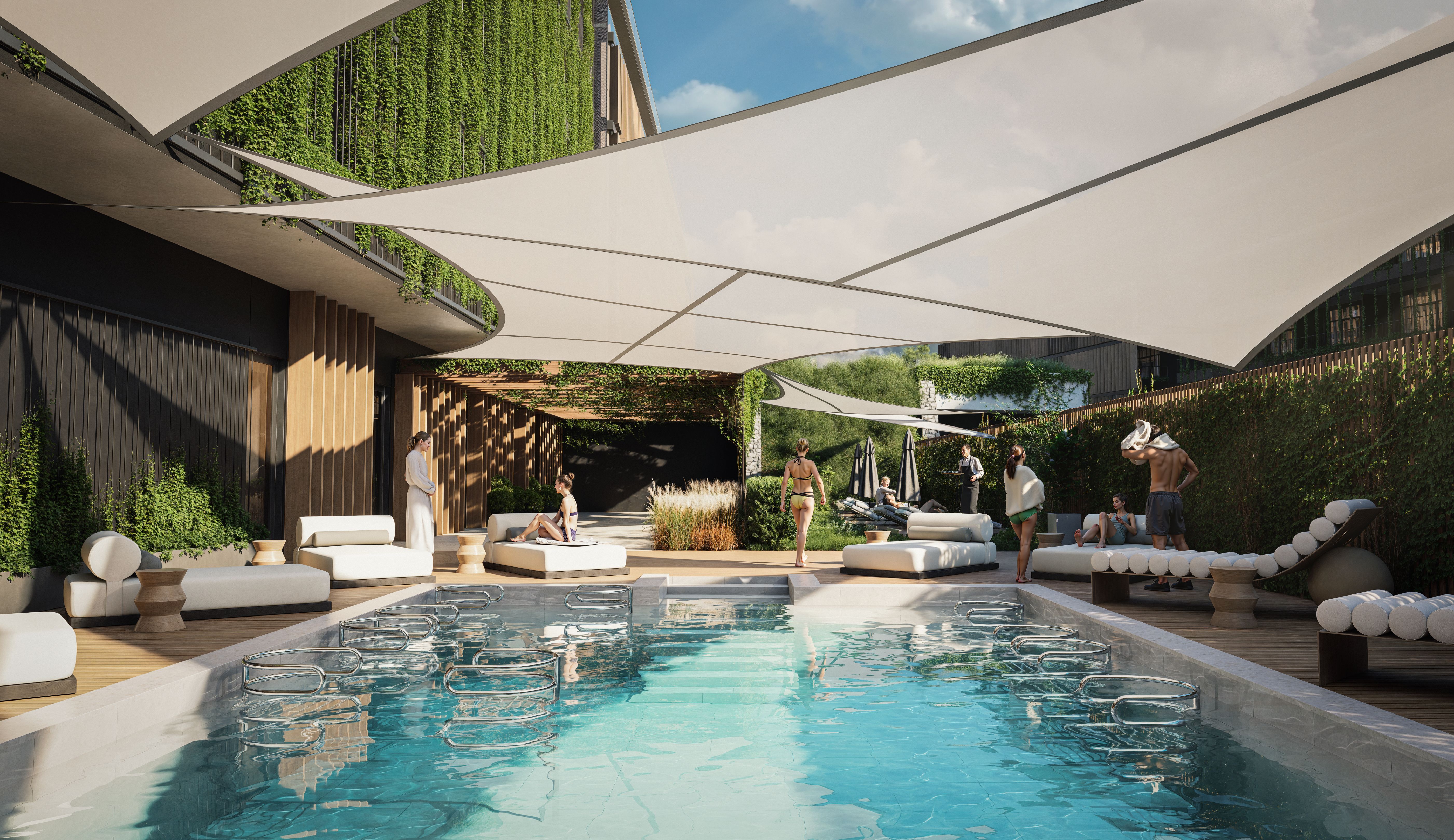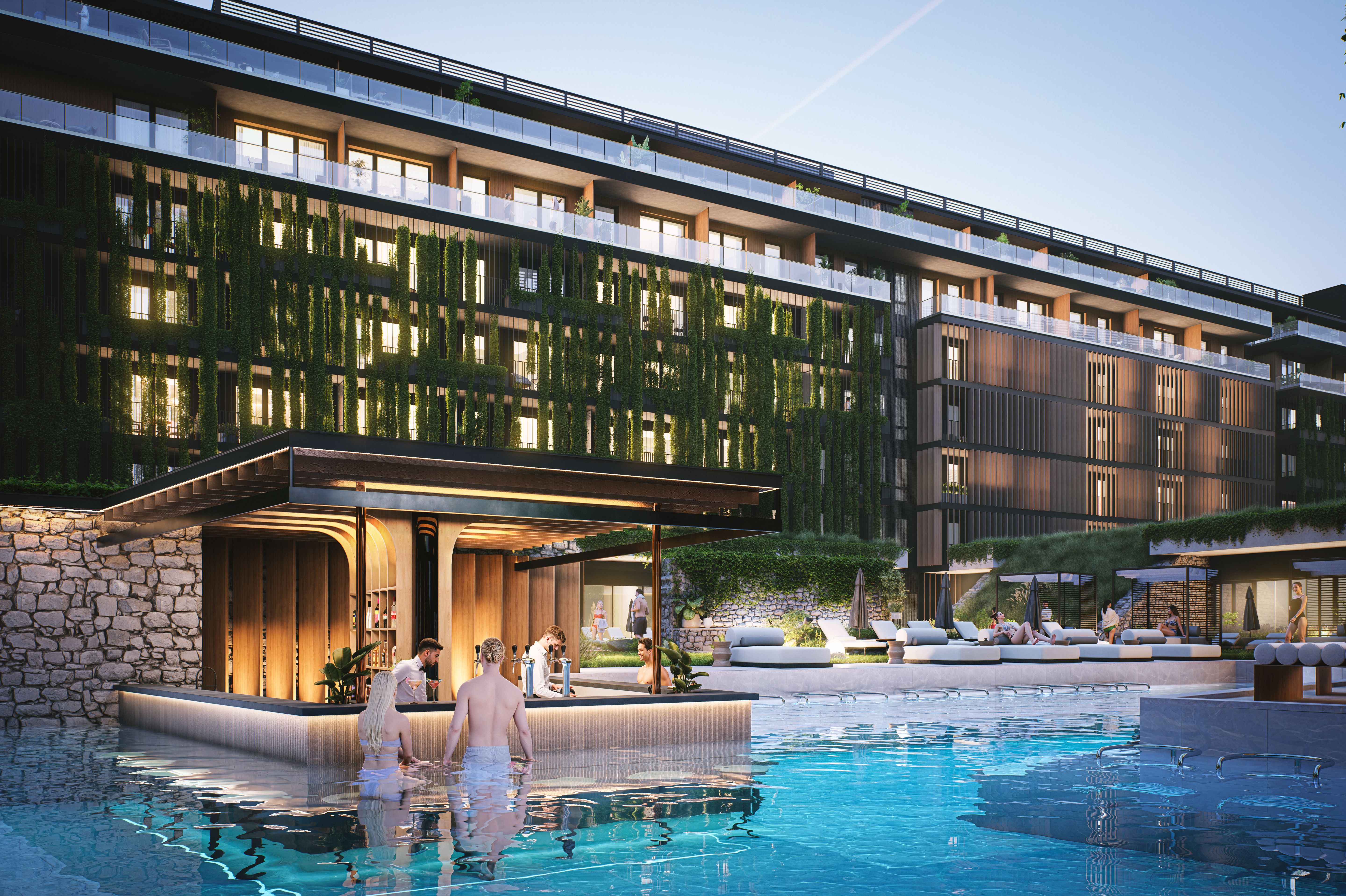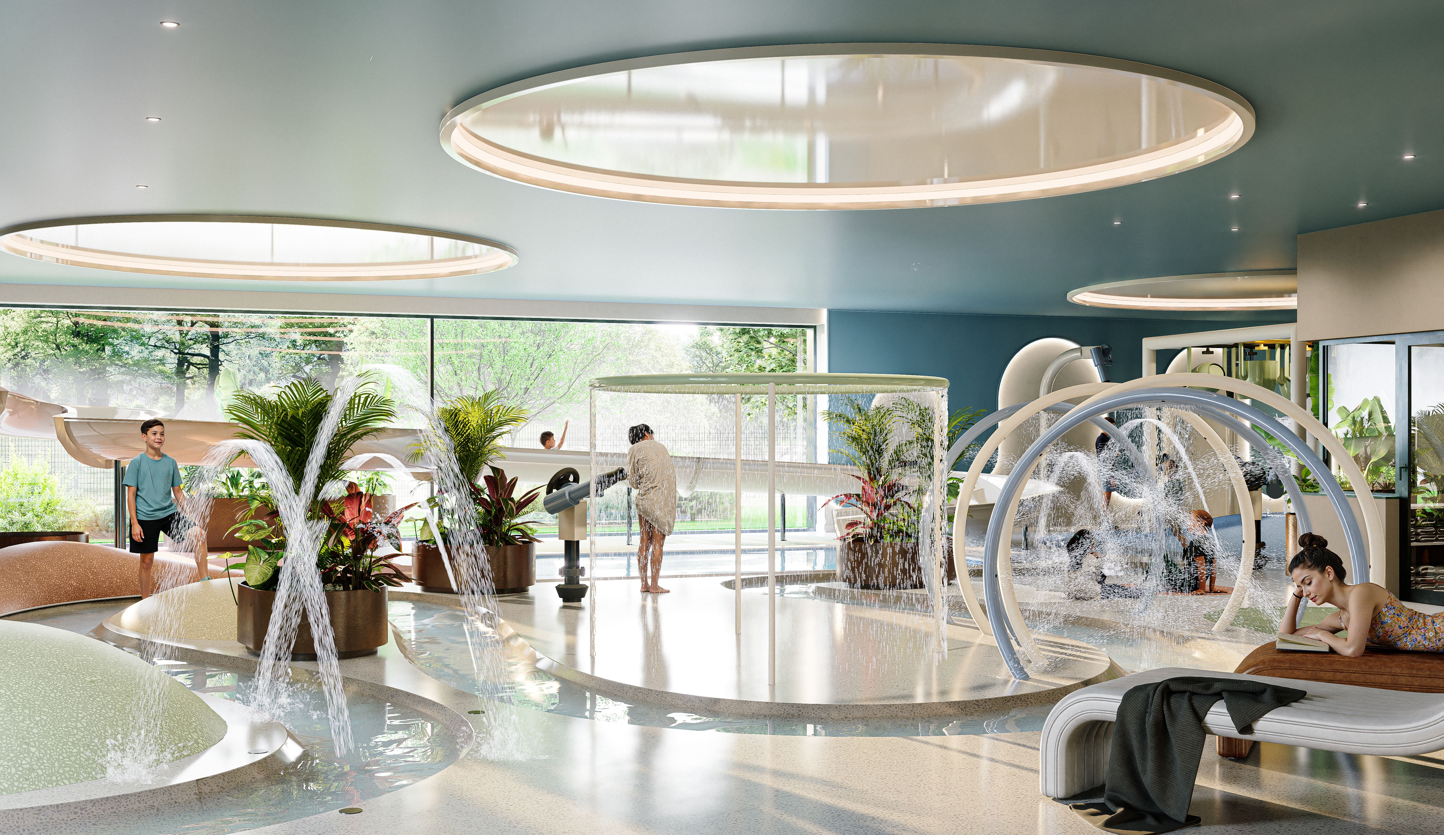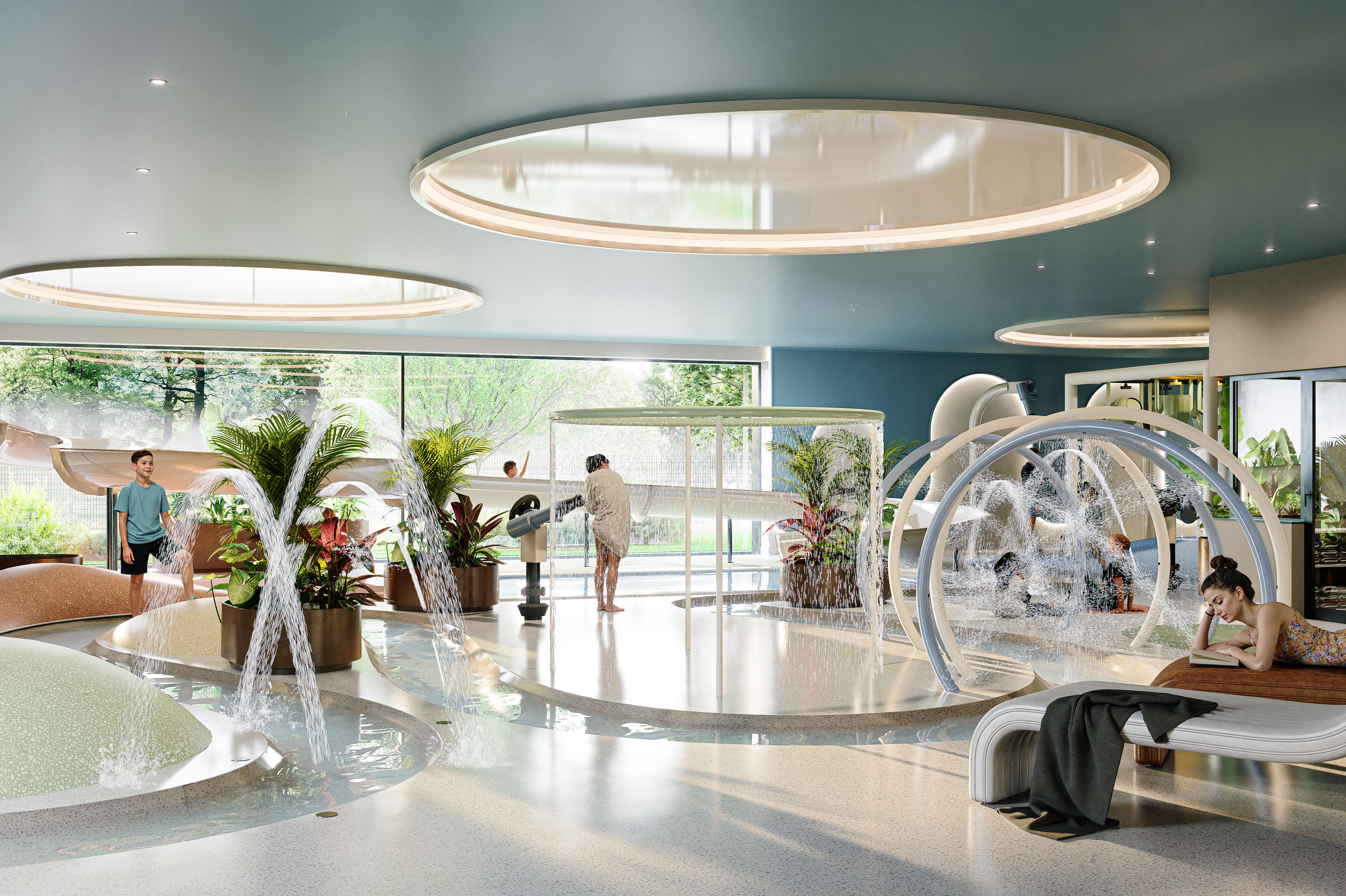 Na zewnątrz czeka 235-metrowy basen zewnętrzny z baldachimami, jacuzzi pod gwiazdami i pool-barem serwującym chłodne prosecco. Dla najmłodszych przygotowano 240 m² wodnego placu zabaw z fontannami, mini-zjeżdżalniami i strefą „Cinema Kids”