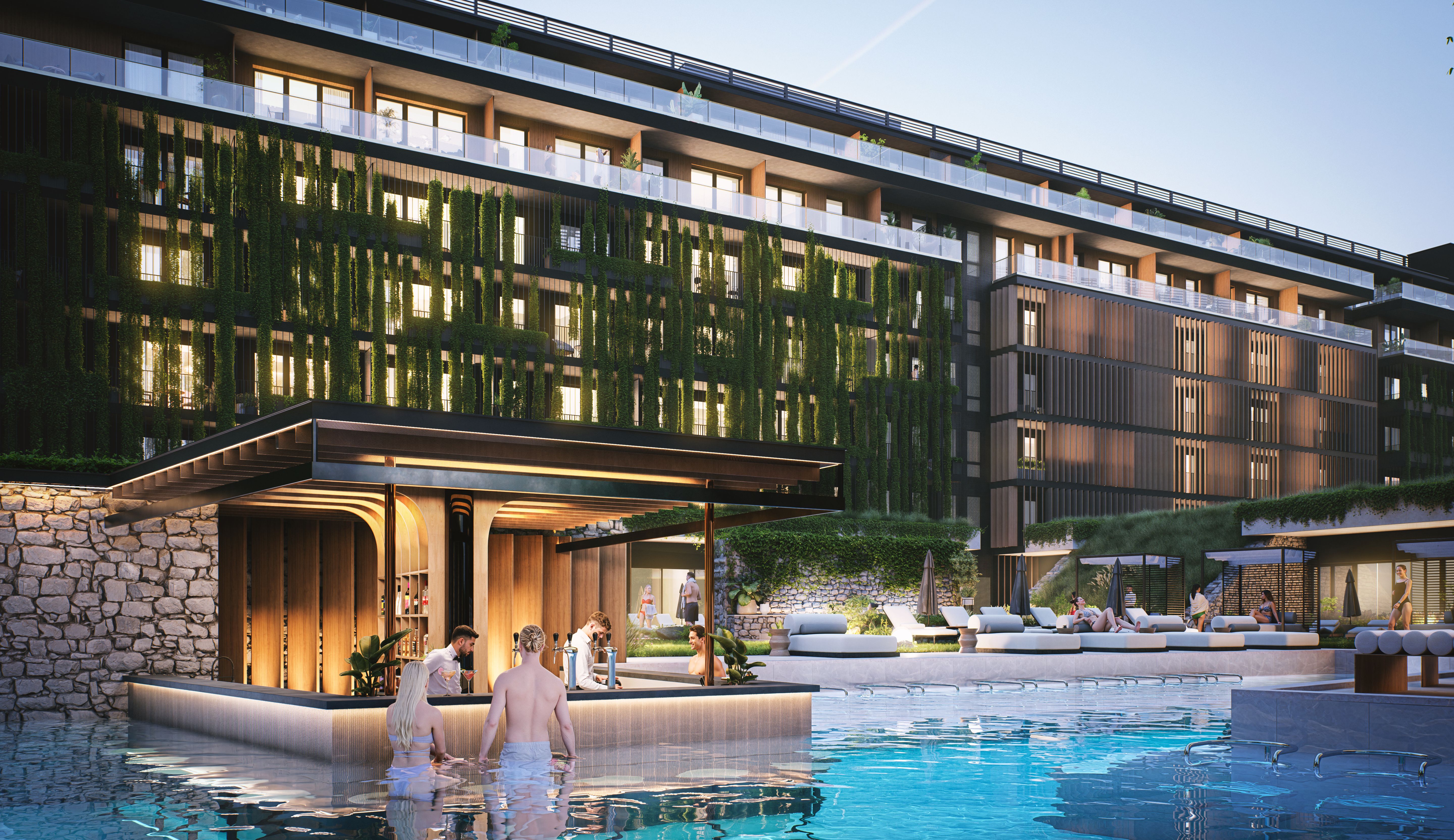 Za projektem Wave Świnoujście stoją wybitne pracownie Medusa Group × IDS Architekci. Ich wspólna wizja stworzyła architekturę ponadczasową, w której drewno, szkło i kamień harmonijnie współgrają z zielenią. Wachlarzowy układ budynków otwiera skrzydła na słońce od wschodu do zachodu, a panoramiczne przeszklenia rozpuszczają granicę między wnętrzem a krajobrazem.