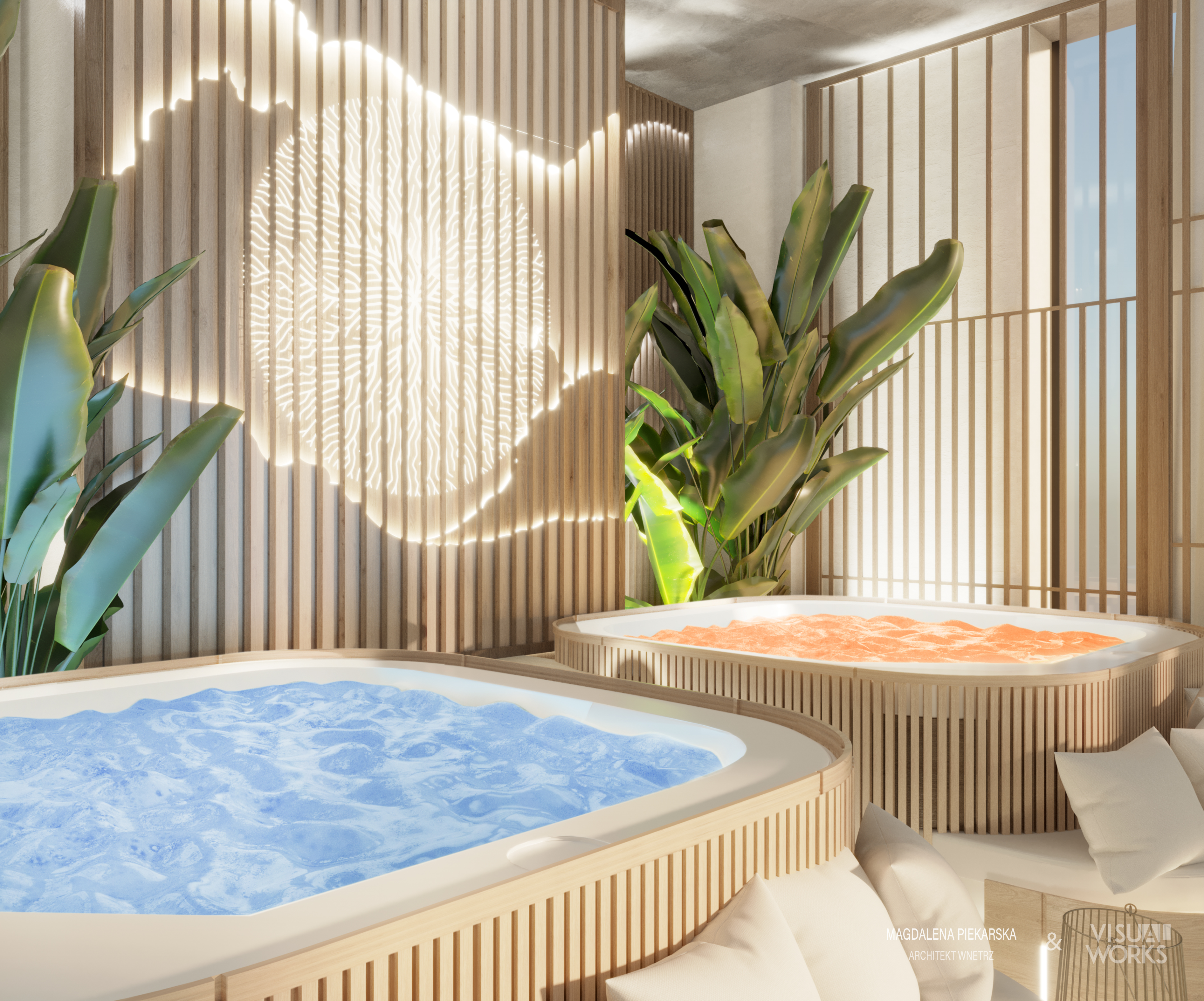 Strefa spa to gabinety leczenia holistycznego, gabinety masażu, gabinety krioterapii, sauna mokra, sauna sucha, sale ćwiczeń (do zajęć jogi, tańca, warsztaty, spotkania)
