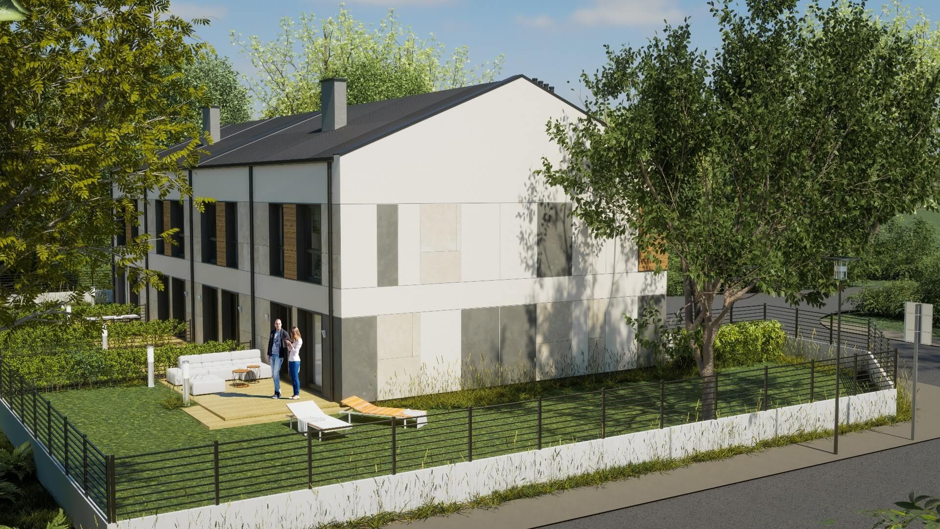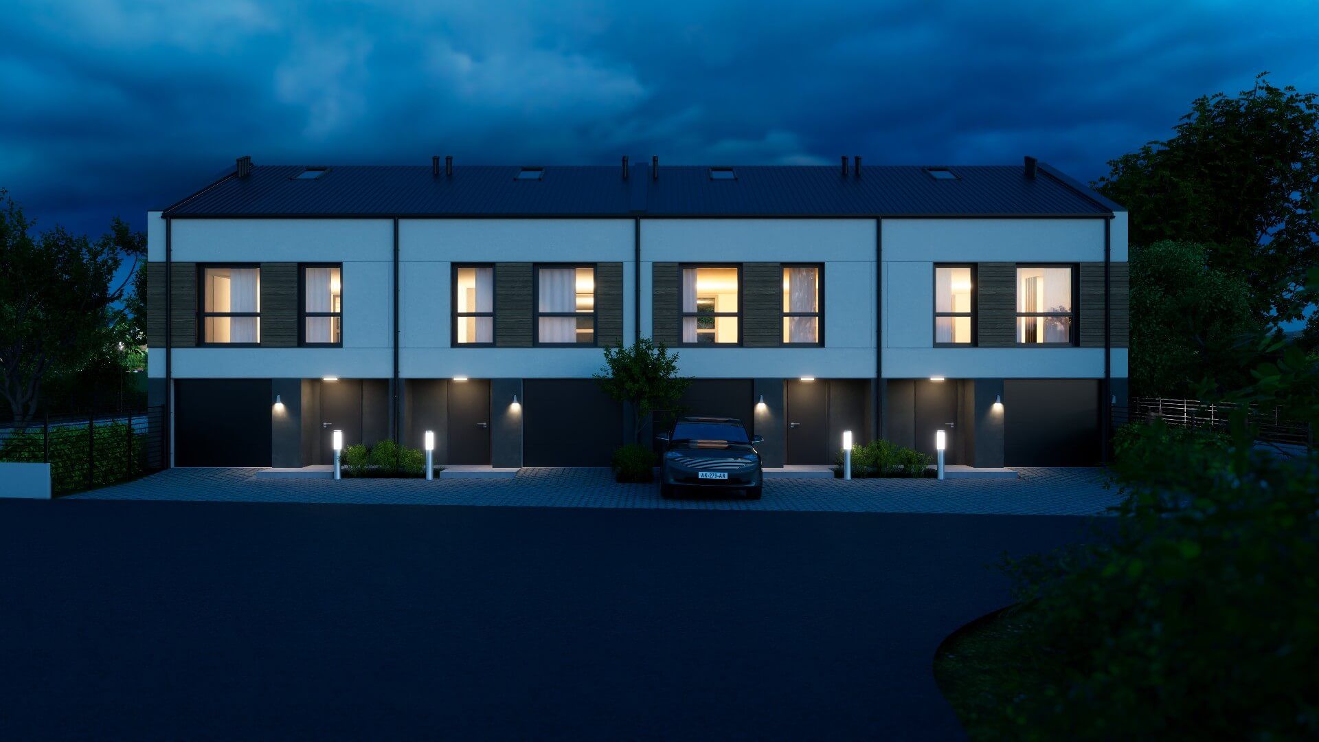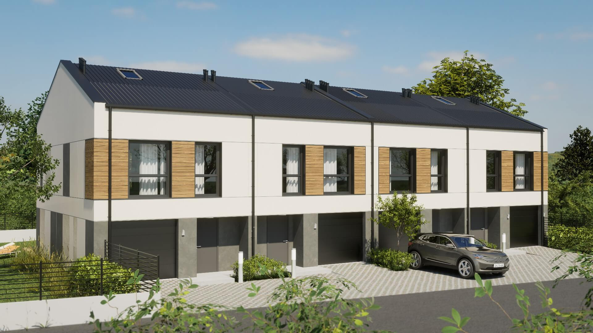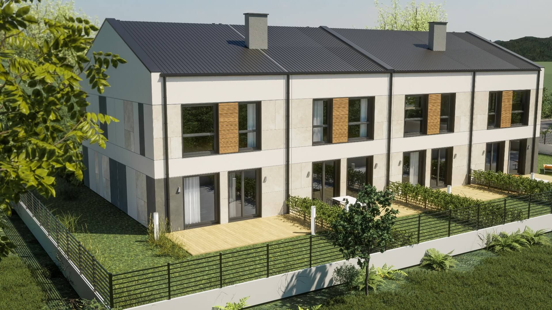 Obiekt składa się z 4 domów w zabudowie szeregowej o powierzchni użytkowej 104,4 m². Każdy z domów ma prywatny podjazd, garaż i taras z ogródkiem.