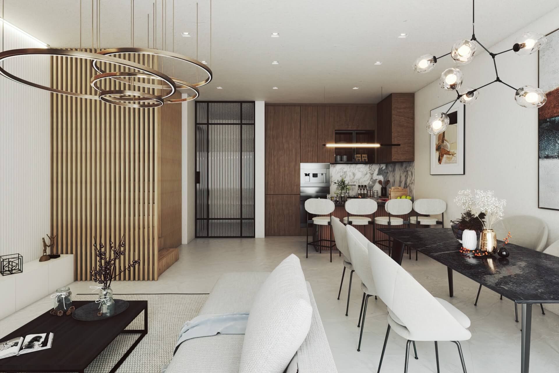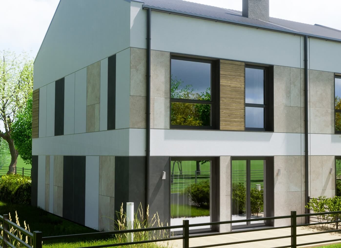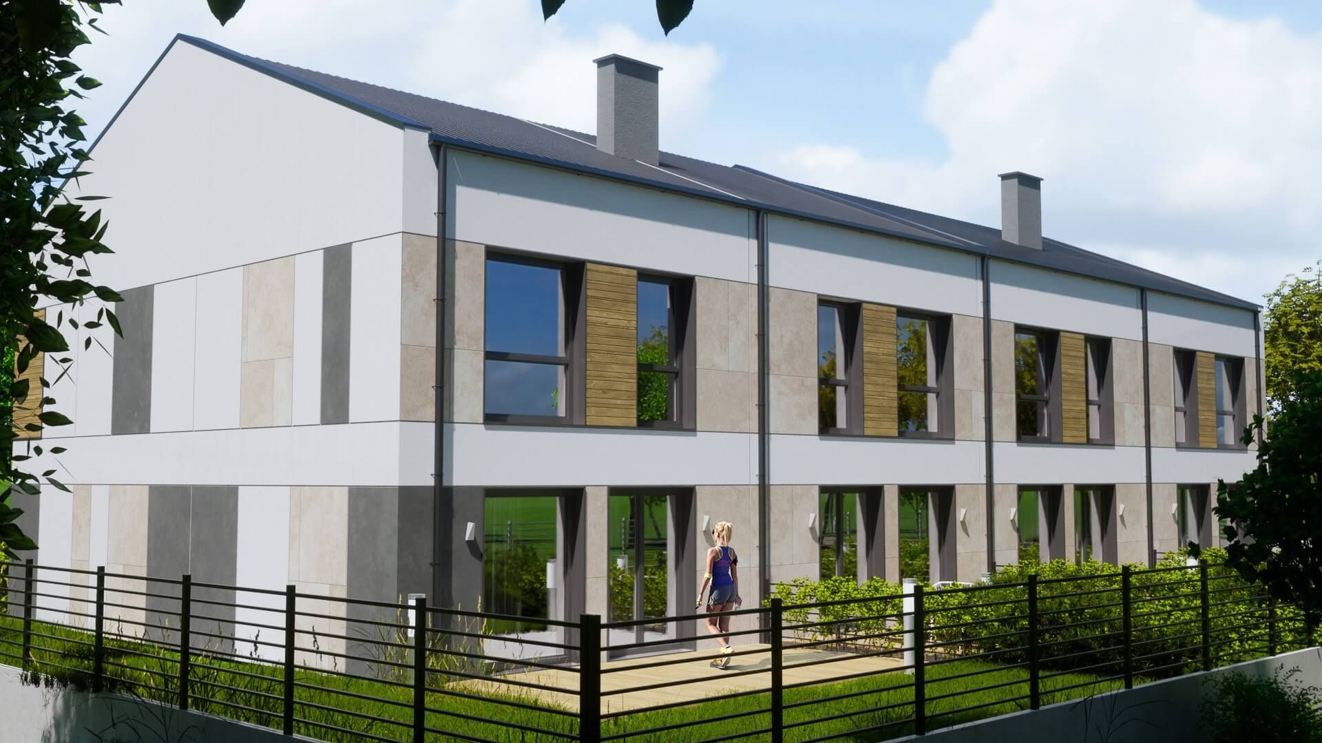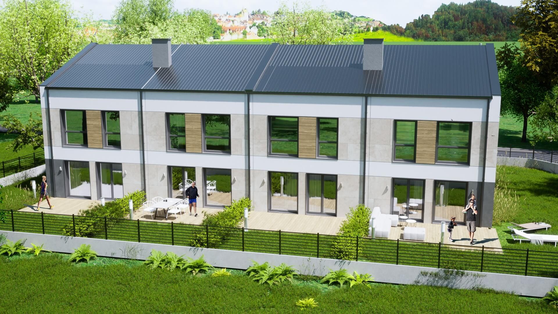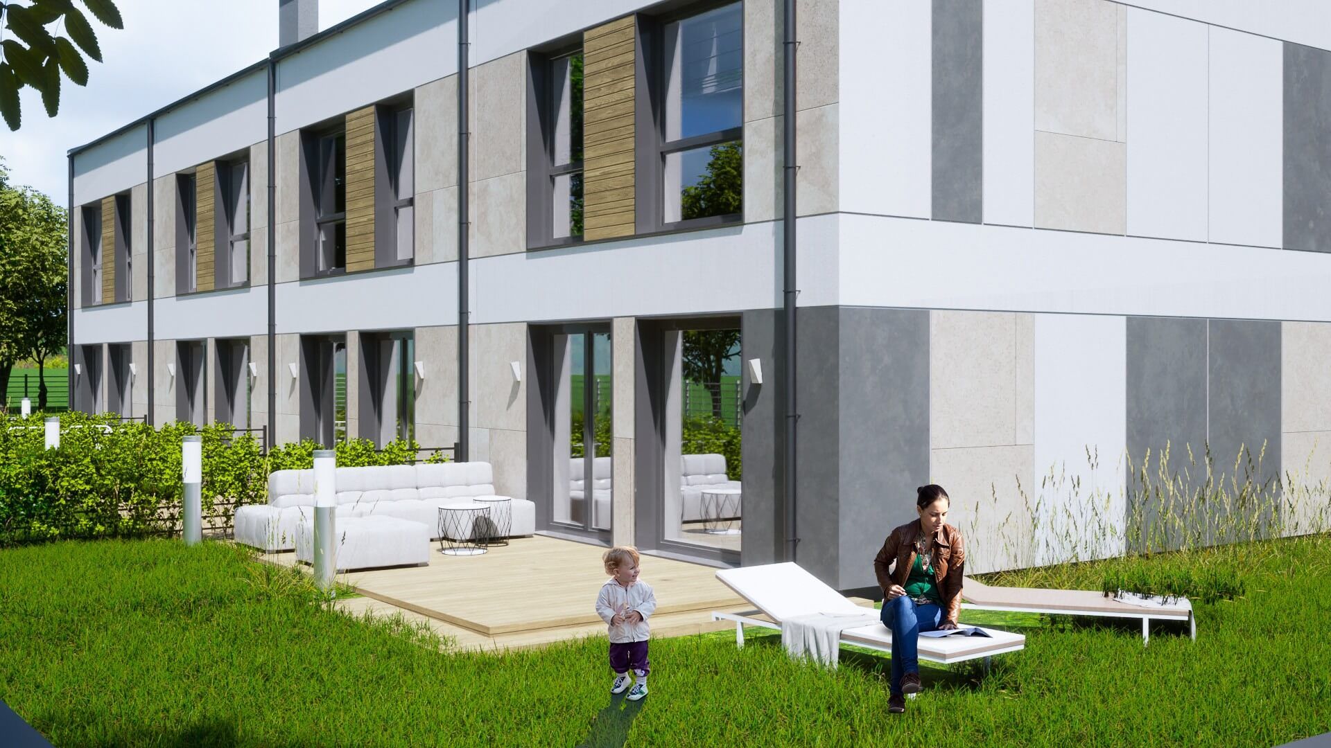 Obiekt składa się z 4 domów w zabudowie szeregowej o powierzchni użytkowej 104,4 m². Każdy z domów ma prywatny podjazd, garaż i taras z ogródkiem.