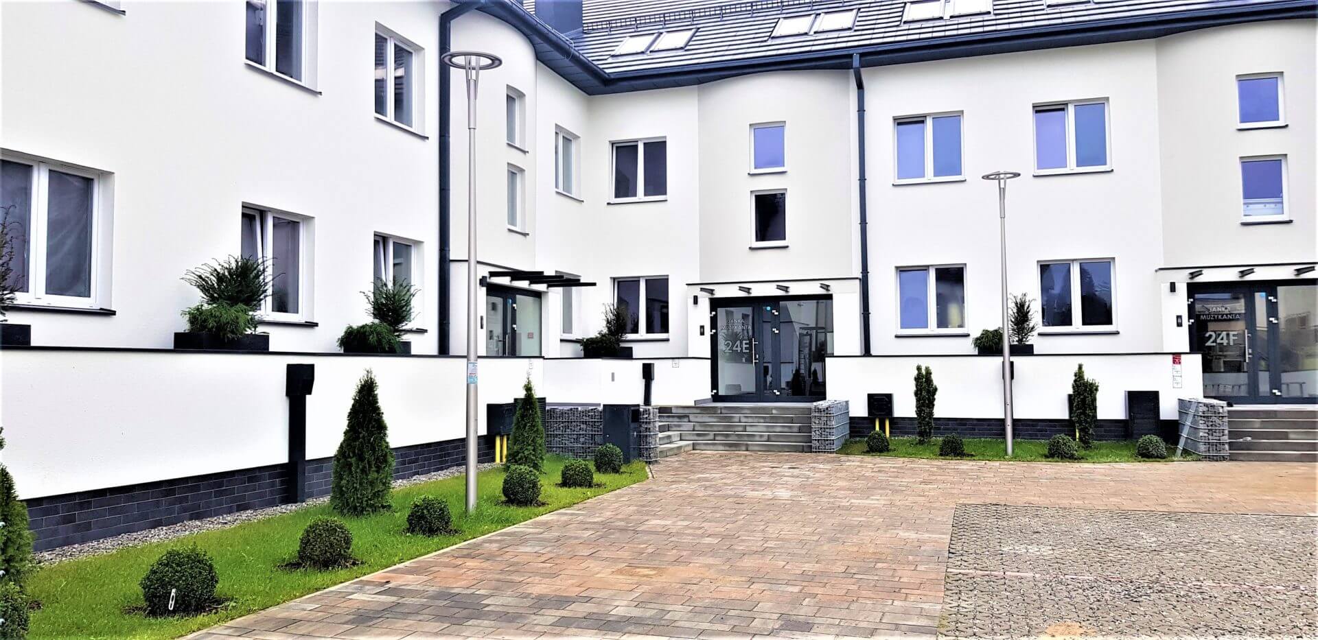 Prezentowane materiały mają charakter informacyjny i nie stanowią oferty w rozumieniu art. 66 1 Kodeksu Cywilnego. W szczególności zakres materiałowy, rozwiązania materiałowe, kolorystyka, funkcjonalność oraz kompletacja mają charakter poglądowy. Ich ostateczny kształt będzie ulegał zmianom w ramach prac projektowych lub wykonawczych, a niektóre elementy mogą nie występować w ostatecznej wersji inwestycji.